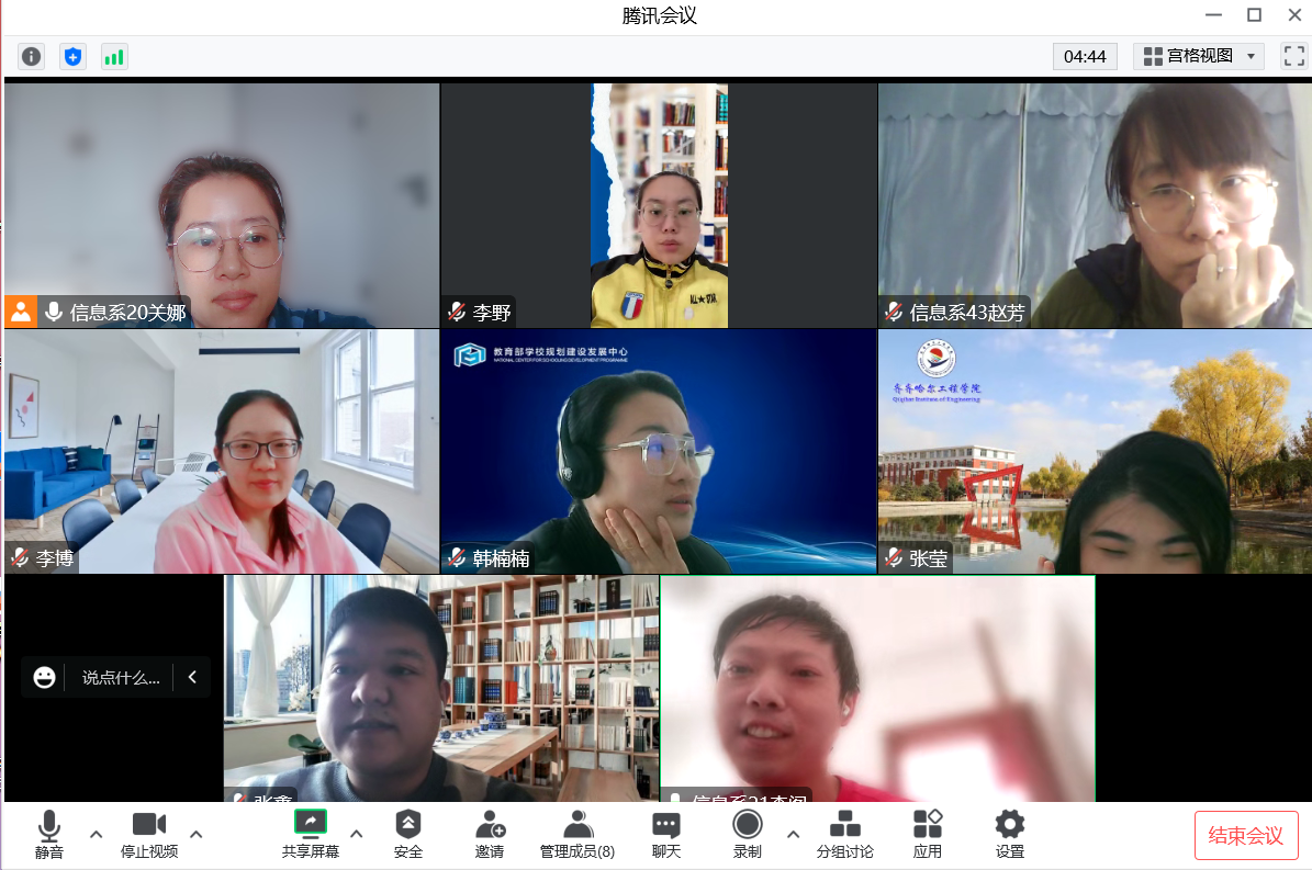 12月5日上午,大外教研室组织成立“大学外语课程考核研究小组”,并在线召开小组会议,徐怡、王妍、宫寄程、马私阳担任主要成员,小组主要进行大学外语“分类分层”后的课程考核的研究工作,课程长刘双丽主持。 研究...