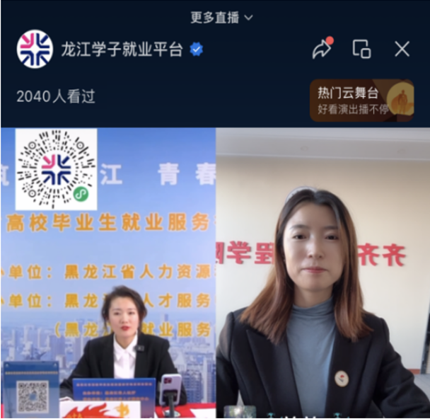 12月15日,人事处参加了“黑龙江省高校毕业生就业服务行动系列云聘会”活动。此次活动是省人才服务中心(省就业服务中心)主办,并依托“龙江学子就业平台”微信视频号,搭建企业和求职人员在线对接通道,以“直播带...