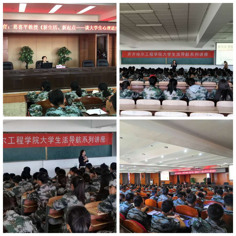 为普及心理健康知识,提高心理调适能力,帮助新生尽快适应大学生活,9月14日、15日,学生发展中心邀请哈尔滨工程大学心理咨询中心主任葛喜平教授作6场题为《新生活、新起点——谈大学生心理适应》的专题讲座,全体新...