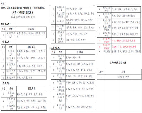 近日,由黑龙江省教育厅主办的第四届“教学之星”外语金课团队大赛和第十三届“外教社杯”全国高校外语教学大赛结果公布。我校基础部大外教研室教师获佳绩。 在系列赛中,“外教社杯”全国高校外语教学大赛中260位优...