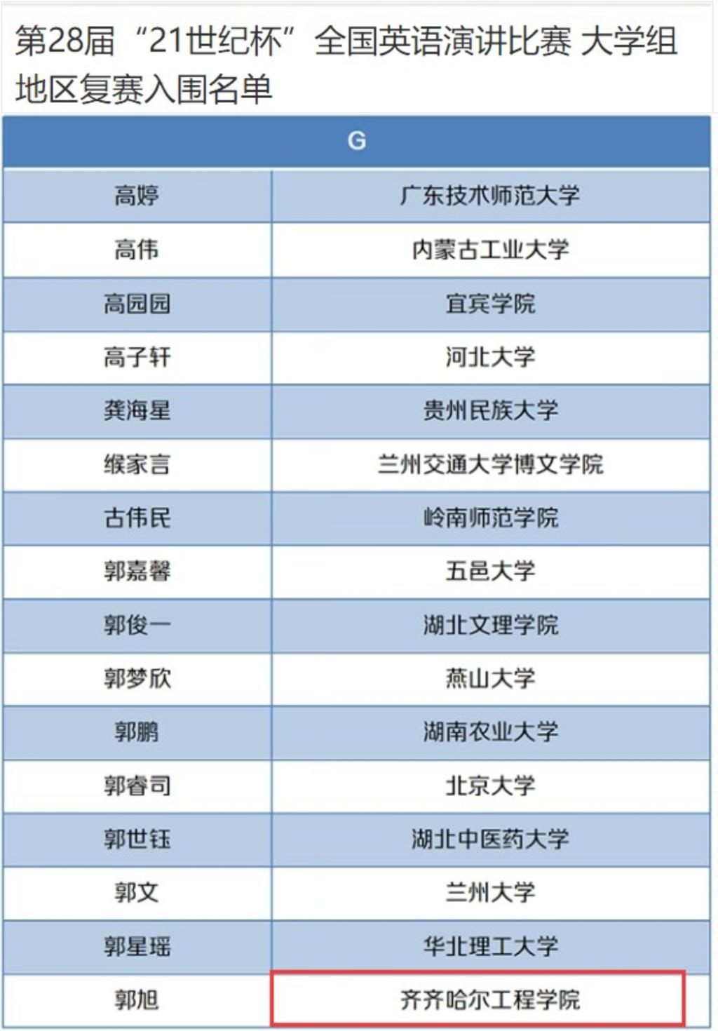 近日,第28届“21世纪杯”全国英语演讲比赛组委会传来喜讯:我校英语专业郭旭同学入围大学组地区复赛。 该项赛事由21世纪报社主办,参赛对象为普通高等学校在校本、专科学生,旨在提高中国青年讲好中国故事的能力水平...