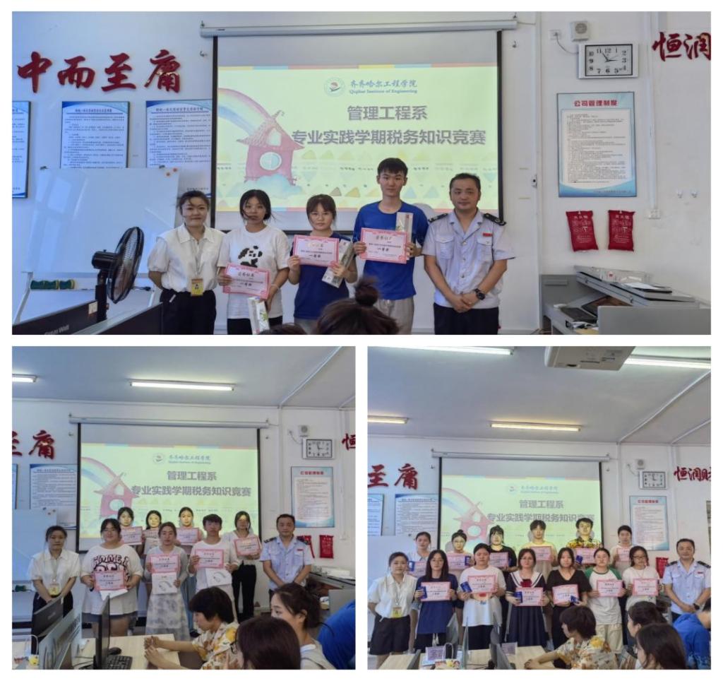 7月31日下午,管理工程系新商科实训中心在三号教学区1301财税一体化实训室举办专业实践学期税务知识竞赛,邀请国家税务总局齐齐哈尔市高新区税务局法制科副科长邱岳峰主持竞赛,新商科实训中心主任陈迦楠及实验指导教...