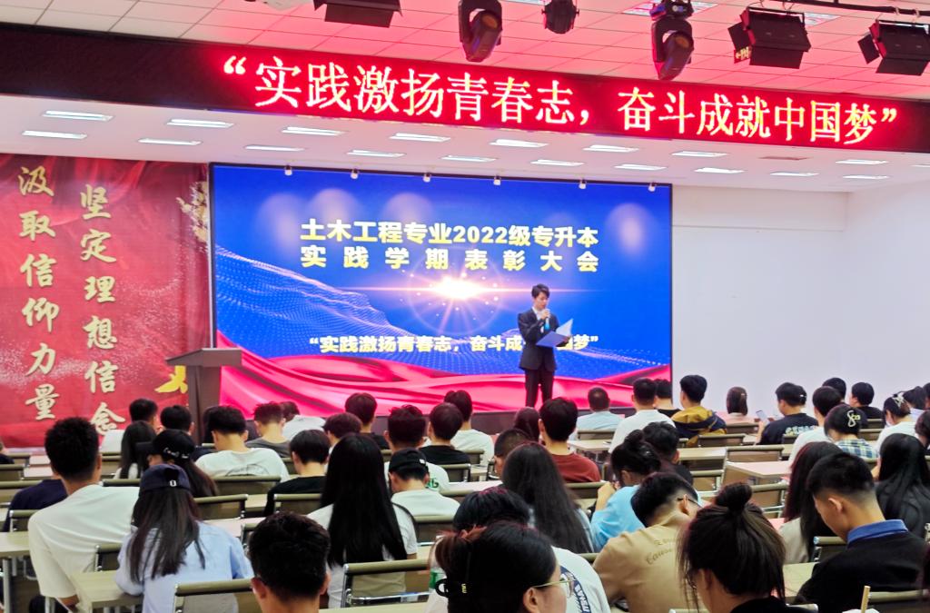 9月7日18时,建筑工程系2022级专升本专业实践学期总结表彰大会在2号教学区2508室举行。系党总支书记、副主任徐明,副书记、学生工作副主任刘贤鹏,教学副主任郝丽娜,土木工程专业负责人钟美慧、教师代表贺全德,以及全体2022级专升本全体学生、2023级专升本及普本学生代表参加。首先,教学副主任郝丽娜对专升本专业实践学期进行了总结。她表示,专业实践学期为学生提供真实的职业环境,在真实的职业环境中真学、真做,掌握真...