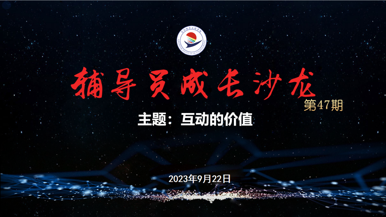 9月22日上午,第47期辅导员成长沙龙在二号教学区2102会议室举行。张振笋副书记出席沙龙,以《互动的价值》为题作专题辅导报告,全体学生工作人员参加学习。张振笋副书记以伍佰演唱会和学校迎新晚会为例,说明“互动”的价值。结合校内外课堂“校企双元育人”理念,认为:“互动是教育根本之根本”“教育的过程本质上就是交往的过程,这个交往就是交流和对话,没有对话就没有交流,没有交流就没有真正的教育”,学校的创新实践就...