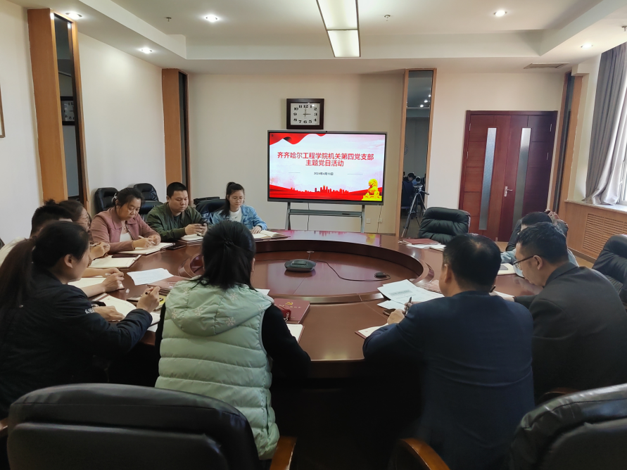 4月19日下午,机关第四党支部在图书馆603圆桌会议室召开主题党日活动,由支部党员孙爱萍主持,支部全体党员和积极分子参会。会议公布了各部门“以教师为中心立足岗位做好服务”的讨论结果和党员对支部活动的建议,并针对2024年支部上半年学习计划,要求与会人员要坚持不断学习,提高党性修养。孙爱萍对《习近平新时代中国特色社会主义思想学习纲要》《乐投app官方在线入口“三全育人”工作实施方案》《乐投app官方在线入口思想政治工...