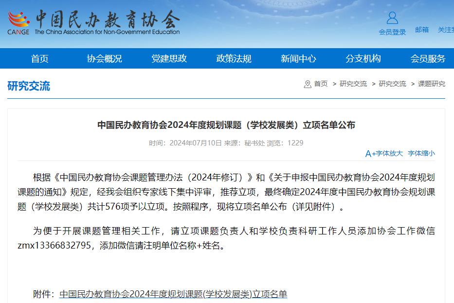 近日,中国民办教育协会官网公布《2024年度规划课题(学校发展类)立项名单》,确定中国民办教育协会规划课题(学校发展类)共计576项。其中,我校陈景鑫、康静、刘春媛、王可心4位老师申报的课题获批立项。此前,我校在2021-2023年度已累计获批中国民办教育协会规划课题(学校发展类)8项。今年4月份,学校科研处根据《中国民办教育协会课题管理办法》和《关于申报中国民办教育协会2024年度规划课题的通知》要求,开展了本年度...