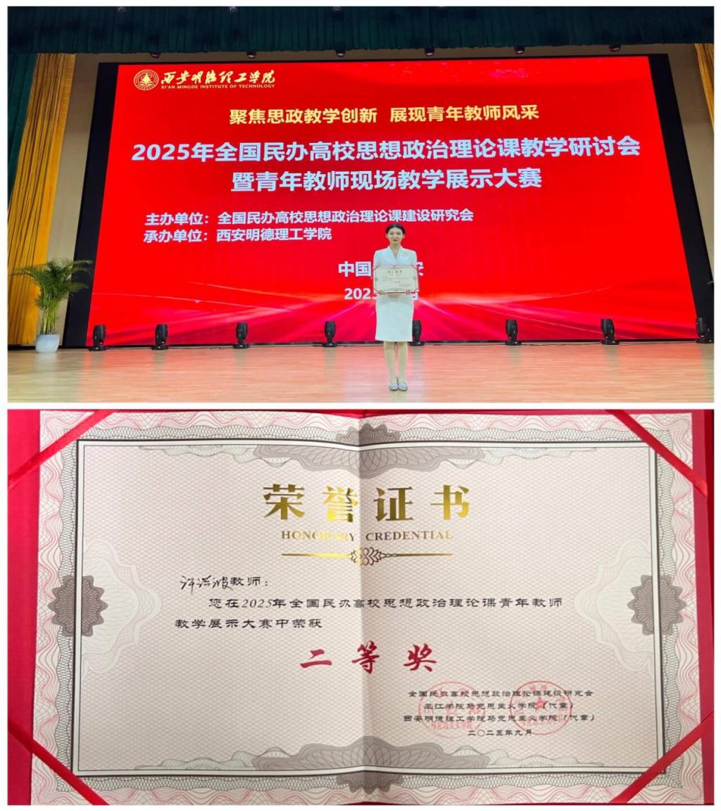 9月21日,全国民办高校思想政治理论课青年教师教学展示大赛在西安明德理工学院举行,来自47所高校的50名青年教师齐聚一堂,展开激烈角逐。我校马克思主义学院教师许洪波沉着应战,发挥出色,最终从众多选手中脱颖而出,荣获二等奖,为学校赢得了荣誉。本次大赛旨在推进民办高校思政课改革创新,建设高素质思政课教师队伍,培养时代新人。大赛自今年7月中旬启动以来,学院高度重视,积极组织青年教师遴选,最终推荐3名优秀教师参...