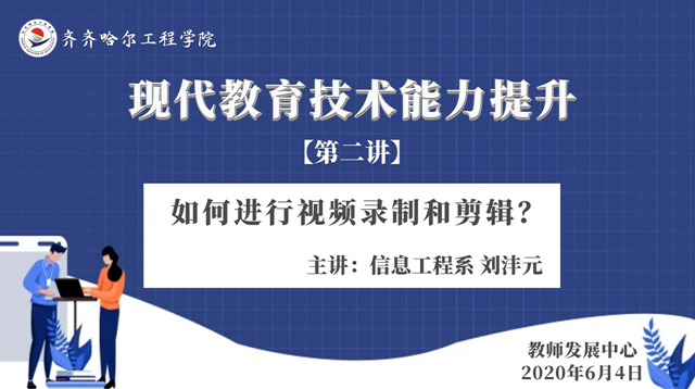 6月4日下午,教师发展中心在线举办首期教师现代教育技术能力提升培训第二讲,信息工程系视觉传达设计专业教师刘沣元做“视频录制与剪辑”专题辅导,近30位教师主动报名参加学习。 培训中,刘沣元老师介绍了3个简单易...
