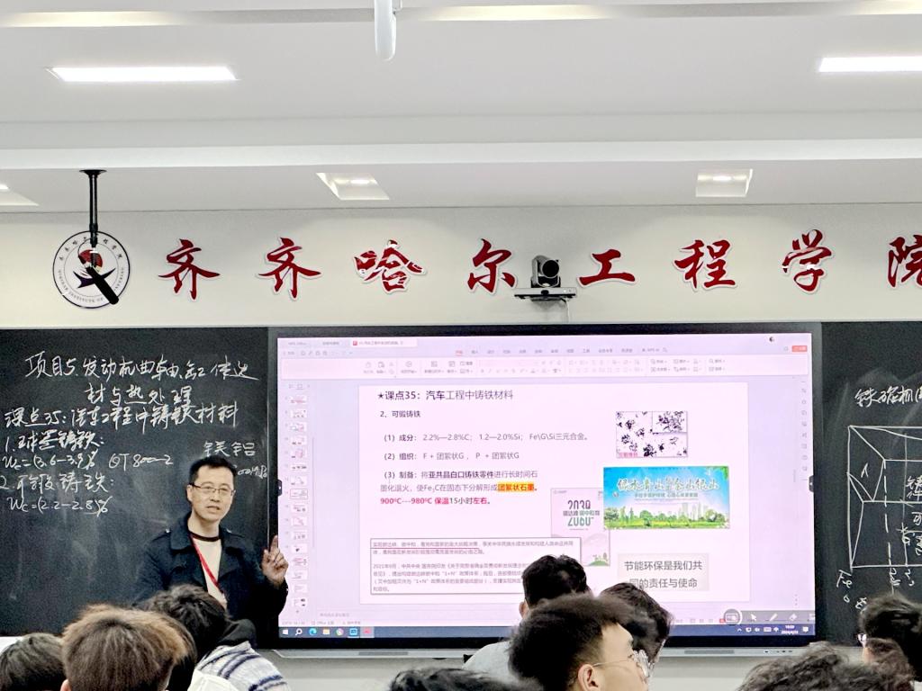 为全面深化课程思政教学改革,切实提升课程思政教学效果,持续优化课堂教育教学质量。4月23日上午,在图书馆414室,教务处副处长郝丽娜、建筑系主任助理王梓伟、信息系教学副主任李野、管理系主任助理于骁晗、基础部副主任程薇薇、机电系教学副主任刘微以及教师20余人参加了机电工程系谢伟东老师讲授《工程材料及机械制造基础》课程的“课程思政示范课”教学观摩活动。授课伊始,谢伟东通过4月23日建军节的宣传海报,展示了新时...
