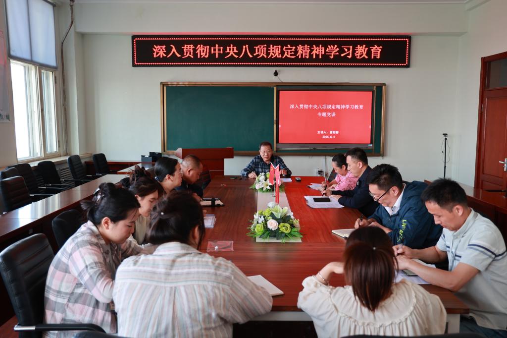 为推动深入贯彻中央八项规定精神学习教育走深走实,进一步强化党员干部的纪律意识和规矩意识,近日,机关第二党支部在图书馆414室召开专题学习会,副校长张静以“以党的作风建设为引领,推动学校高质量发展”为题讲授专题党课。机关第二党支部全体成员参加学习。会议由支部书记李文禹主持。会上,张静首先强调了中央八项规定及其实施细则的重要意义和新时代加强党的作风建设的重要性,细致介绍了贯彻落实中央八项规定精神以来...