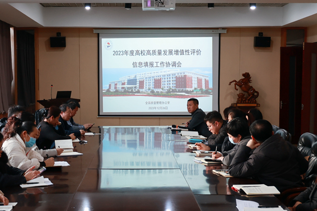 12月26日下午,学校在图书馆603南会议室召开2023年高质量发展增值性评价信息填报协调会。党委书记郭伟东主持会议并讲话,学校全体校领导和部门负责人参加会议。全面质量管理办公室主任孟艳辉介绍了高质量发展增值性评价信息填报内容、填报流程以及填报系统操作要点等,明确了工作流程与职责分工。院长曹然彬就我校高质量发展增值性评价填报工作的重要性、工作要求以及工作态度提出具体明确的要求。郭伟东书记就高质量发展增值...