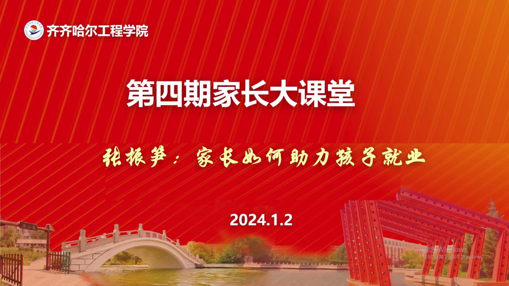 为全面落实党中央、国务院对高校毕业生就业创业工作的决策部署,按照教育部和省委、省政府对高校毕业生就业创业工作的有关要求,全力促进我校毕业生高质量充分就业、留省就业。1月2日,校党委副书记张振笋做客第四期家长大课堂,以《家长如何助力孩子就业》为题做专题讲座。张振笋副书记以聊家常的方式,从就业形势、择业观念、创业精神、职业指导四个方面,以丰富的案例,生动的语言,围绕毕业生家长普遍关心的毕业生就业问题...